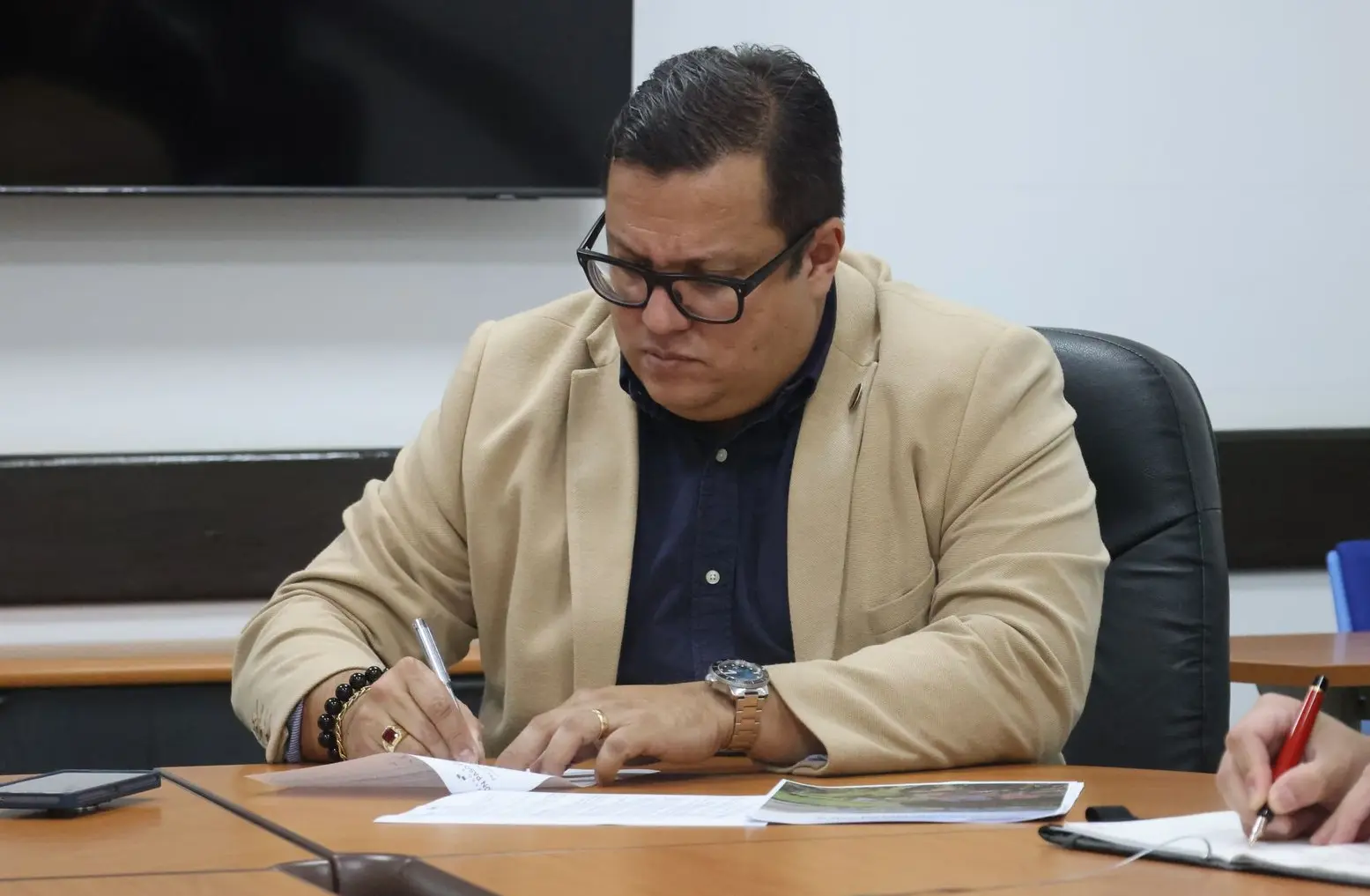 El Dr. Julio Nieto, en representación del laboratorio, fue recibido por el administrador, arquitecto Javier Suárez Pinzón y el subadministrador, Arturo Araúz.